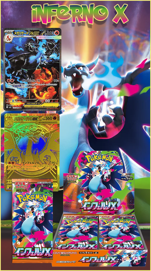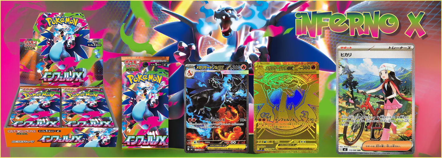 Ignite your collection with Inferno X, the hottest Japanese Pokémon TCG set of 2025! This premium booster box is packed with legendary chase cards like Charizard ex SAR and Charizard MUR, plus investment-grade, ultra-rare holographic Pokémon cards. Perfect for Pokémon card collectors and savvy investors, Inferno X sealed booster packs deliver premium value, fiery artwork, and the thrill of pulling rare cards. Don’t miss this top-rated Japanese Pokémon TCG release. Order your Inferno X booster box now and own a piece of Pokémon card history!