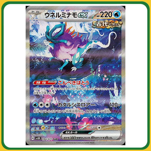 Top Chase Cards to Look For: Charge into the chase for the unforgettable Wild Force Ogerpon ex SAR, the sleek Iron Boulder ex SAR, and exclusive Full Art Trainers that put serious value into every pull. With dazzling Japanese-only secret rares, every pack has the potential to roar!